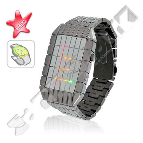 Die sagenhafte Influx LED Uhr, exklusiv in der Schweiz nur bei SackStark.com! Die Zeit wird im Retro-Stil und auf Knopfdrück via unzähligen roten, grünen und orangen LED Zellen angezeigt, welche fast unsichtbar in das zellenförmige, spiegelblanke Zifferblatt eingelassen sind. Es gibt keinen cooleren oder innovativeren Weg heutzutage die Uhr anzuzeigen!
